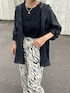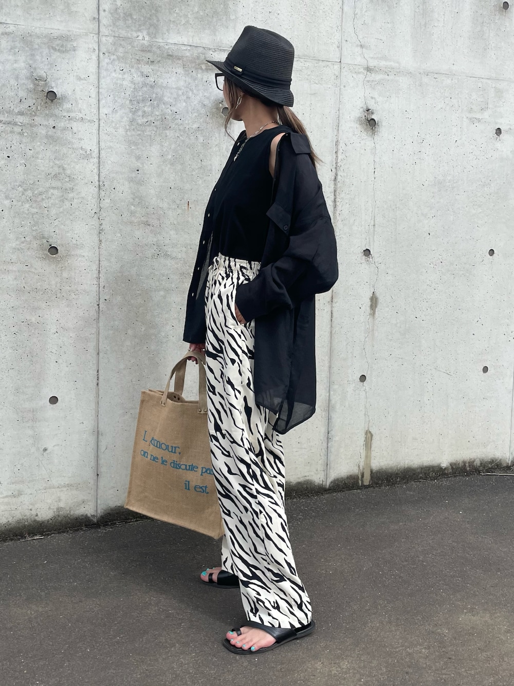 ゼブラ柄の楽ちんワイドパンツは、 シンプルコーデのアクセントに♡ オーバーサイズのシアーシャツと合わせた、 ゆるコーデ😊 ▪️Instagram COPINE→@copine_ayaiku 私→@ayayayark
