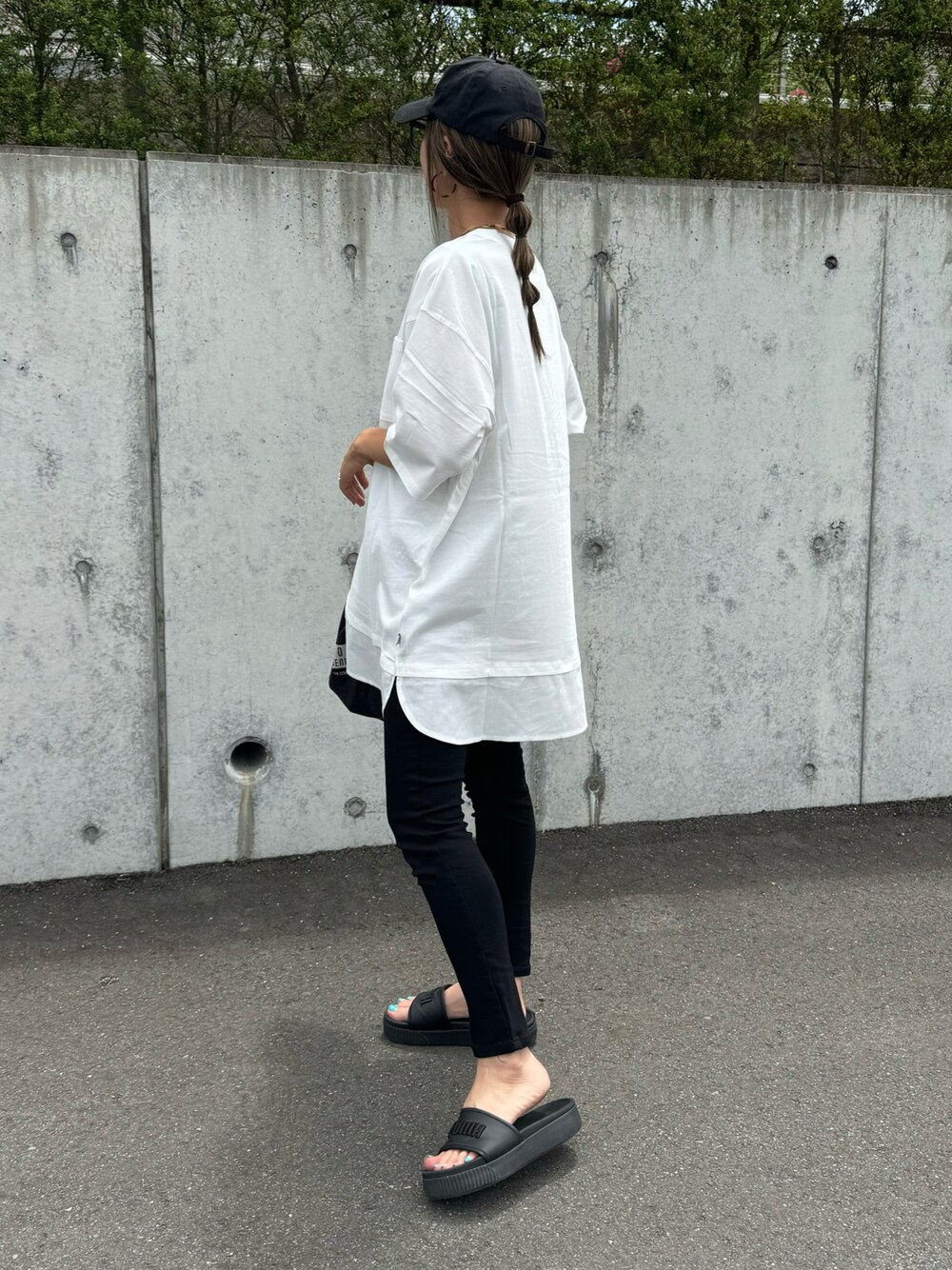 レイヤード風なビッグシルエットtシャツ♡ スーパーストレッチで楽な履き心地のスキニーと合わせたシンプルコーデ♪ ▪️Instagram @ayayayark
