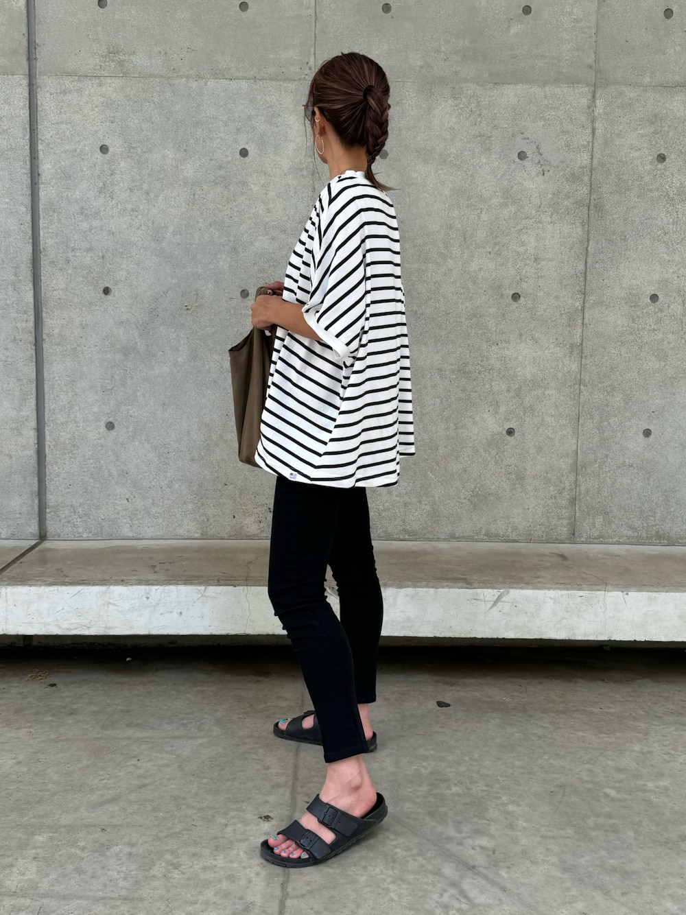 USAコットンの着心地のいいボーダーtシャツ。 スーパーストレッチブラックスキニーと合わせた モノトーンカジュアル😊 ▪️Instagram @ayayayark