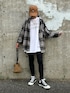 ayaのシャツ/ブラウス「ルーズ起毛チェック柄シャツ(ブラック)」を使ったコーディネート
