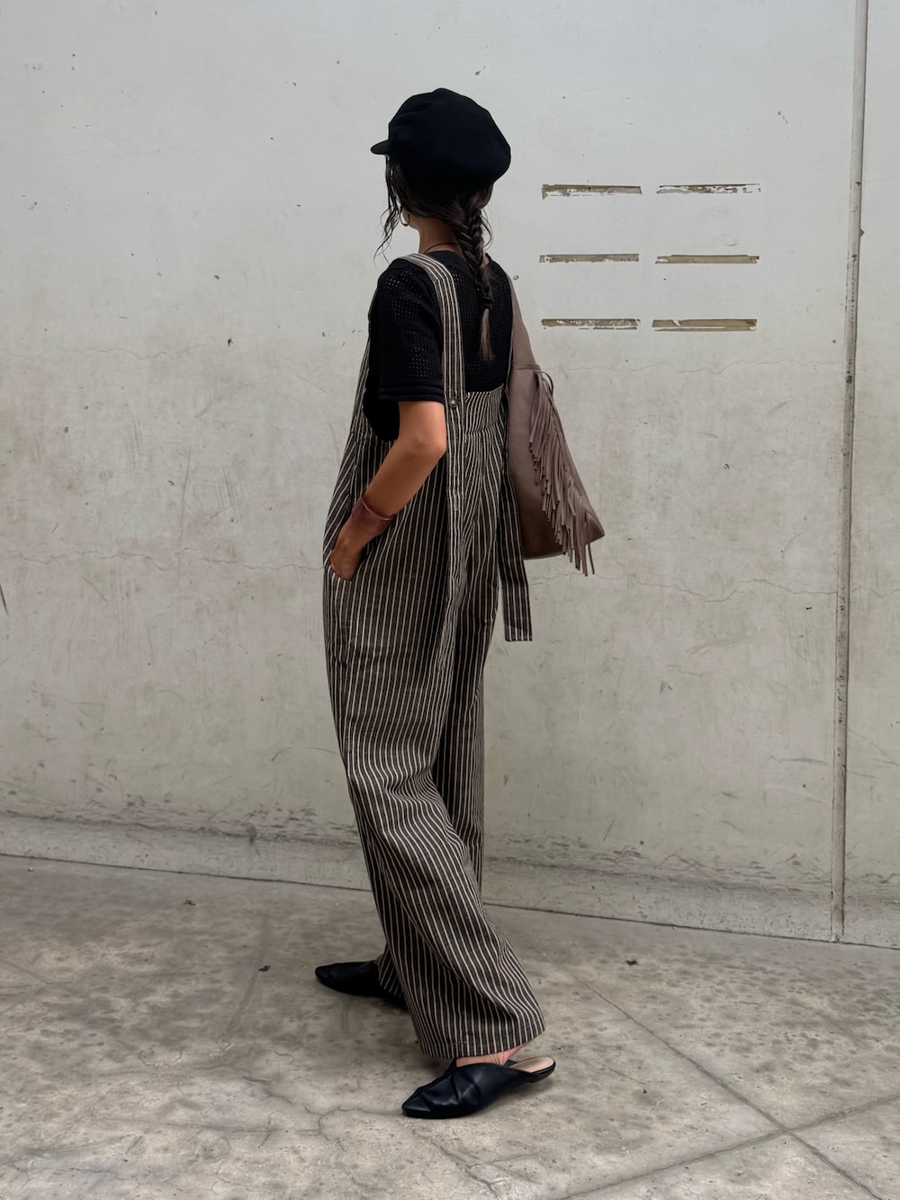ストライプのワイドサロペット✨ 肩紐で長さ調整可能♪ きちんと感も出してくれる、大人なきれいめサロペット😊 ▪️Instagram @ayayayark