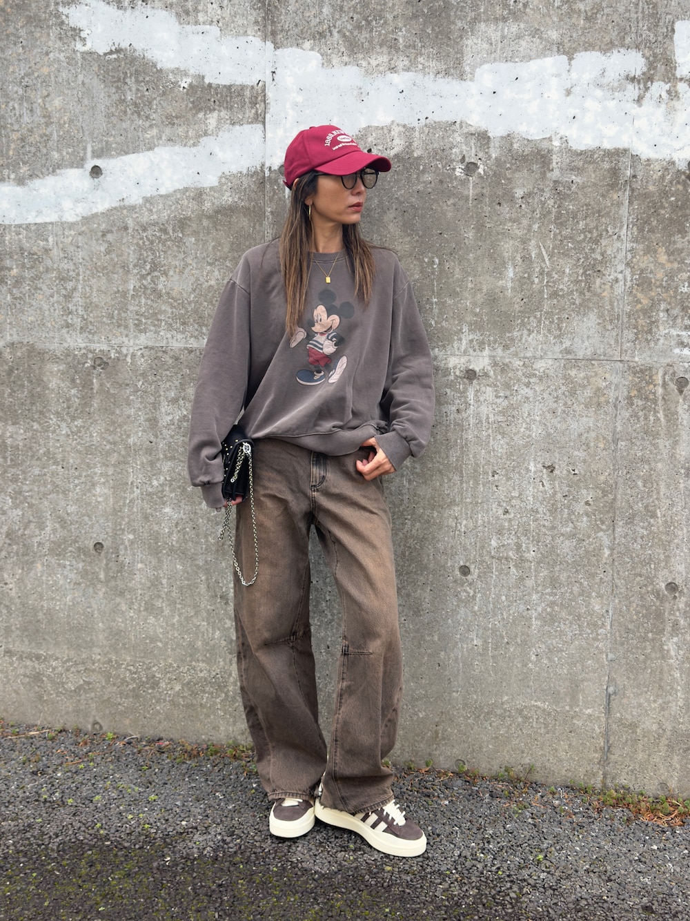 肘パッチデザインのミッキーピグメントスウェット✨ ブラウンで合わせて😊 COPINEアイテムはInstagramからサイトご覧頂けます♪ ▪️Instagram @copine_ayaiku 私▶︎@ayayayark