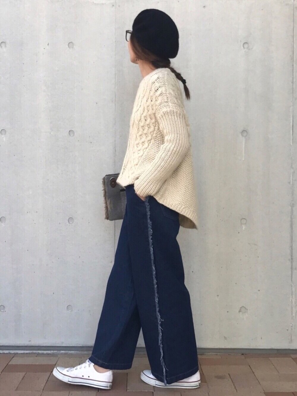 ゆるゆるラフコーデ💗 サイドにフリンジが付いたワイドパンツは、 後ろウエストがゴムになっていて履き心地もよく、ラインもきれい😍 デザインが可愛いケーブルニット、後ろが長くなっていてゆる具合がお気に入り💗 今から、10年以上ぶりにスキー場いってきます😹 ご覧くださりありがとうございます💗 ◆copine◆ サイドフリンジワイドデニム ¥3200 ☆再入荷☆オルテガ柄2WAYクラッチバッグ ¥2900 是非ご覧下さい💗 ◆Instagram◆ copine➡️copine_ayaiku 私➡️ayayayark