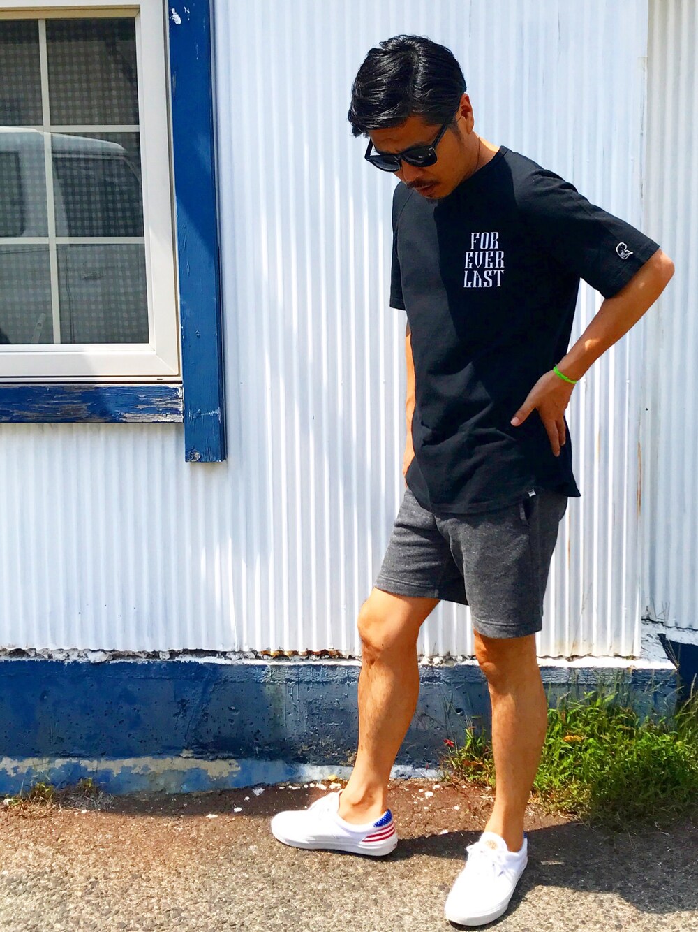 EVERLAST ×RHC コラボTの超リラックスコーデ☺︎ ブラック系コーデ 重くなりすぎない様に足元はホワイトのVANS×カリフォルニア工務店で❤︎