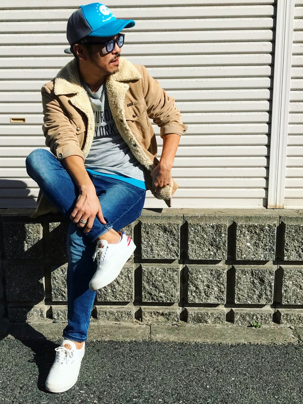 足元のVANS×カリフォルニア工務店を使って西海岸アメカジスタイルをイメージ☺︎🇺🇸 ボアコートも暖かいんで中はまだ半袖っス🖤