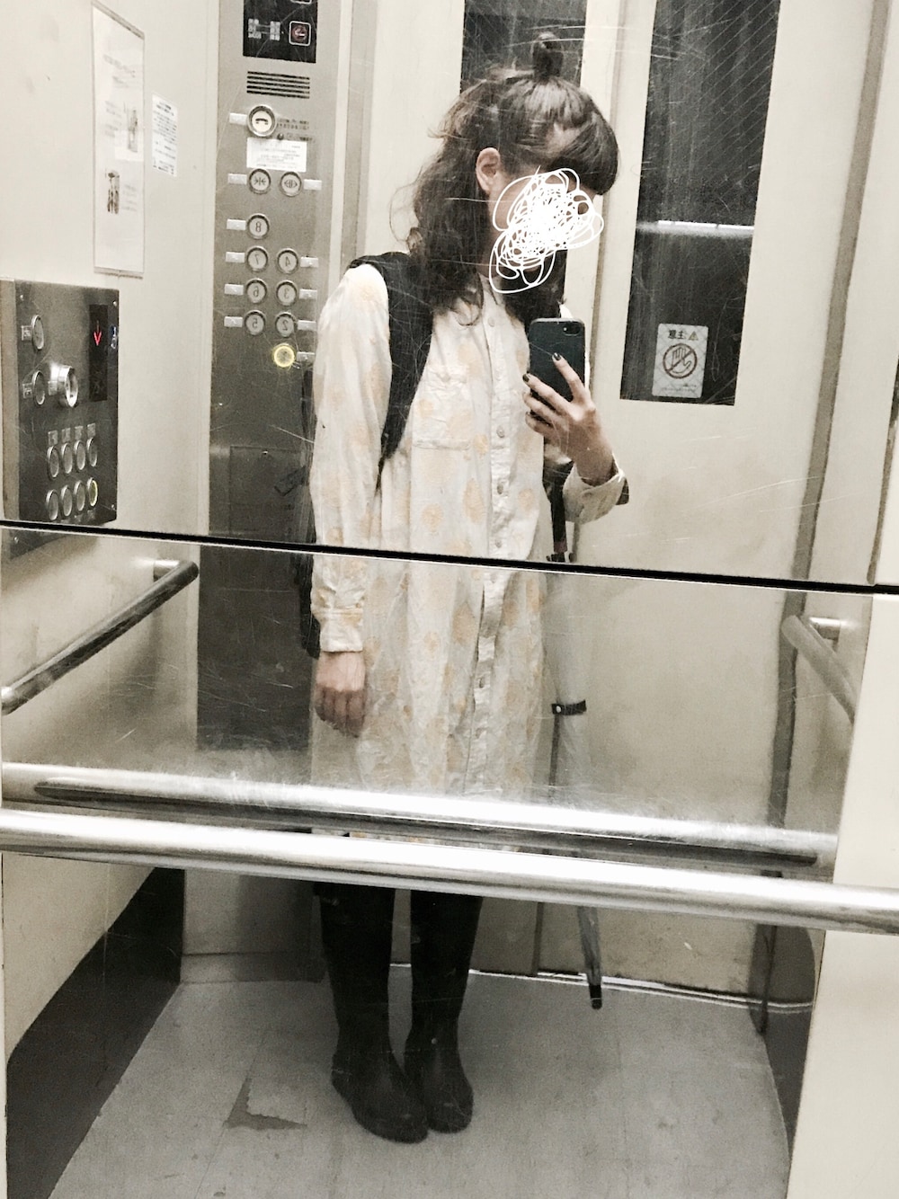 雨の日の服はレパートリーがないので困る。。 植物の刺繍が全体的に入ってるシャツワンピ。 初めてmarble SUDで買った服。