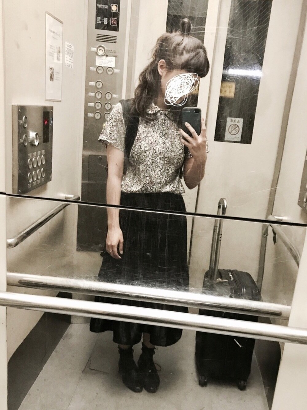 暑い。半袖に逆戻り。 やっと見つけたお気に入りの黒いスカート。 これもmarble SUDのインポート。 途中まで細かいプリーツで、裾の方はプリーツなし。 てろてろてかてかしてる。