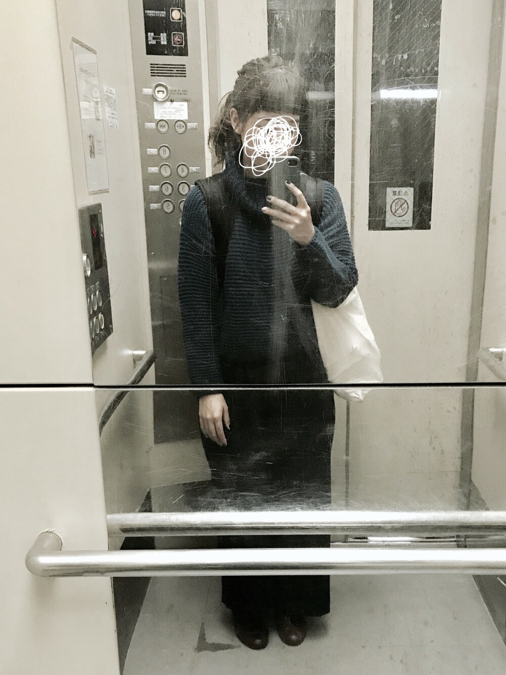 寒いので厚めのセーター着てきたらちょっと暑かった。 marble SUDのインポートのセーター。 網目大きめで、首元のボリューム、丈感、お気に入り。