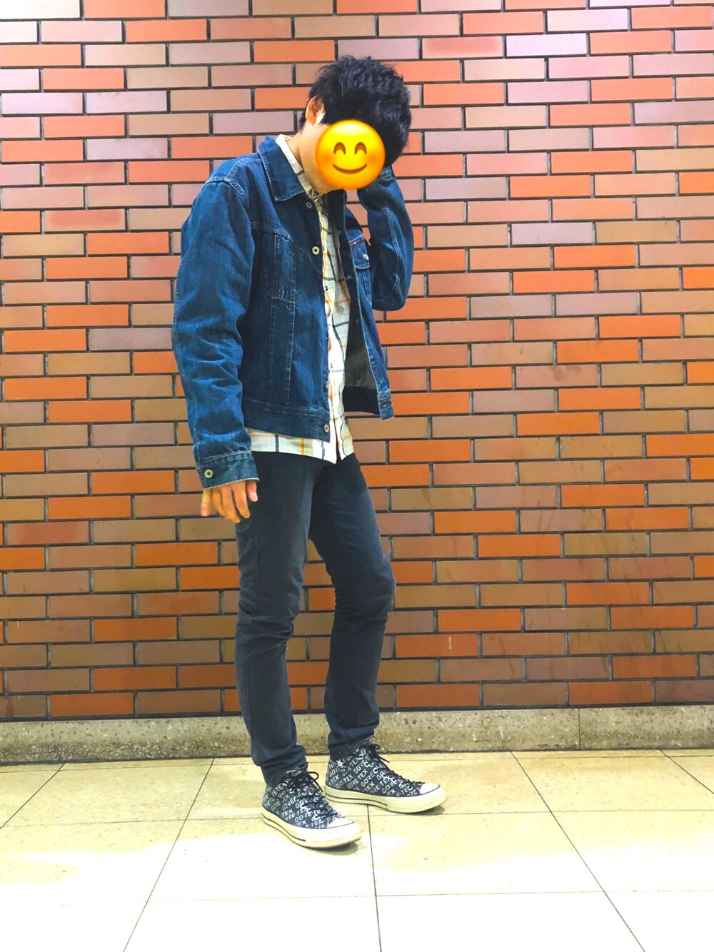 チェックシャツとデニムジャケットのカジュアルコーデ CT70はゴアテックス仕様で雨の日用に履いてます☂️