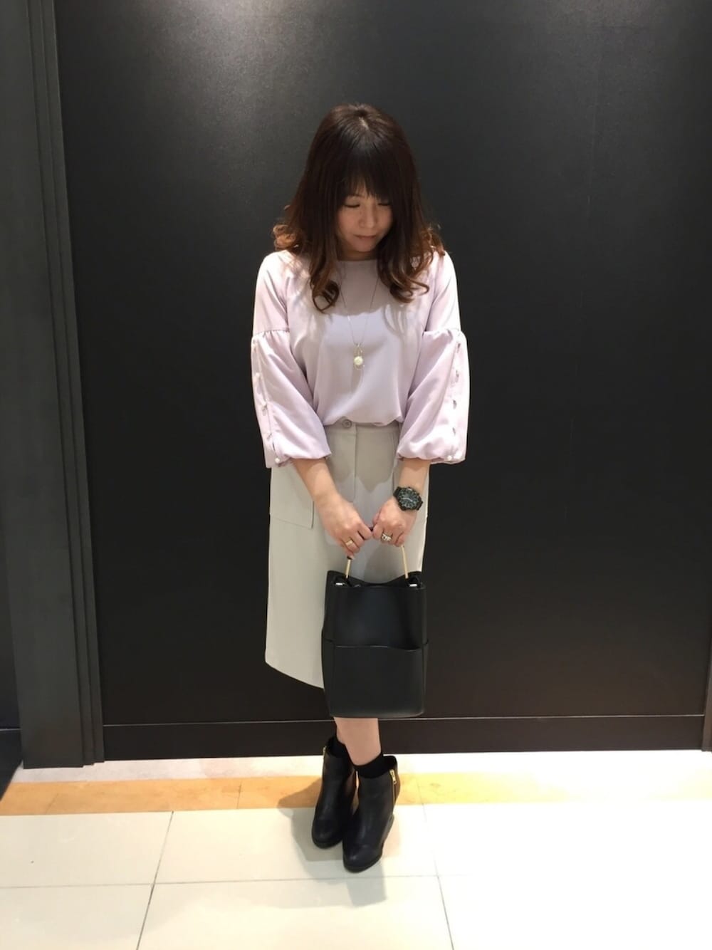 JUNのシャツ/ブラウス「パール×レース袖2WAYブラウス」を使ったコーディネート