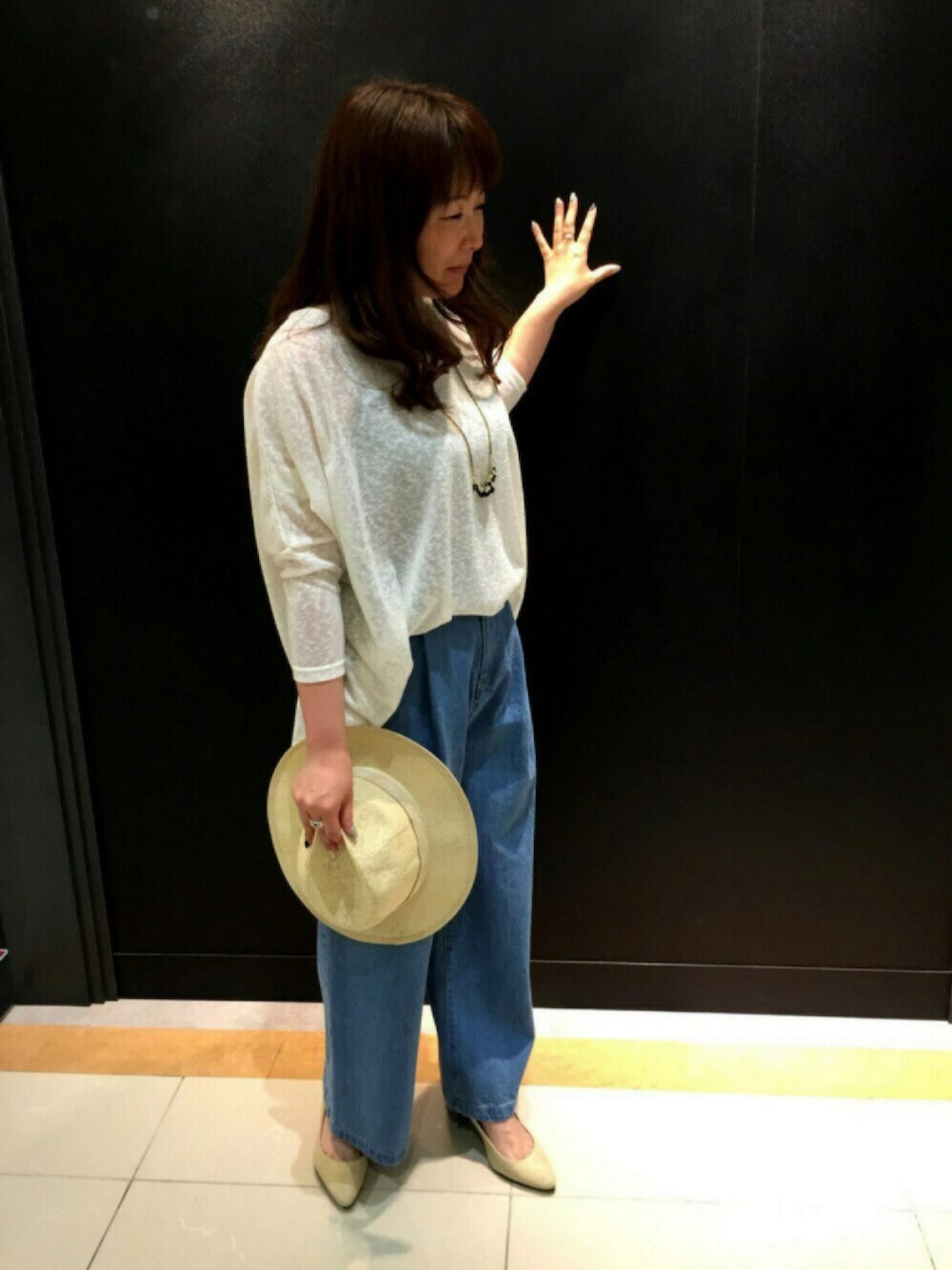 今日はかなり暑かったので、透け感のある5分袖ドルマンニットソーにデニムワイドパンツのコーデ♫ トップスはVネックでゆったりしたシルエットだったので、フロントをインしてボトムと合わせてみました😄 インナーのタンクトップがセットになっています✨ 今回もご覧くださりありがとうございました🍀