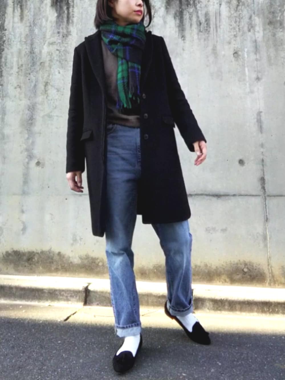 KKのチェスターコート「BYTF ダブルメルトンチェスターコート◆」を使ったコーディネート