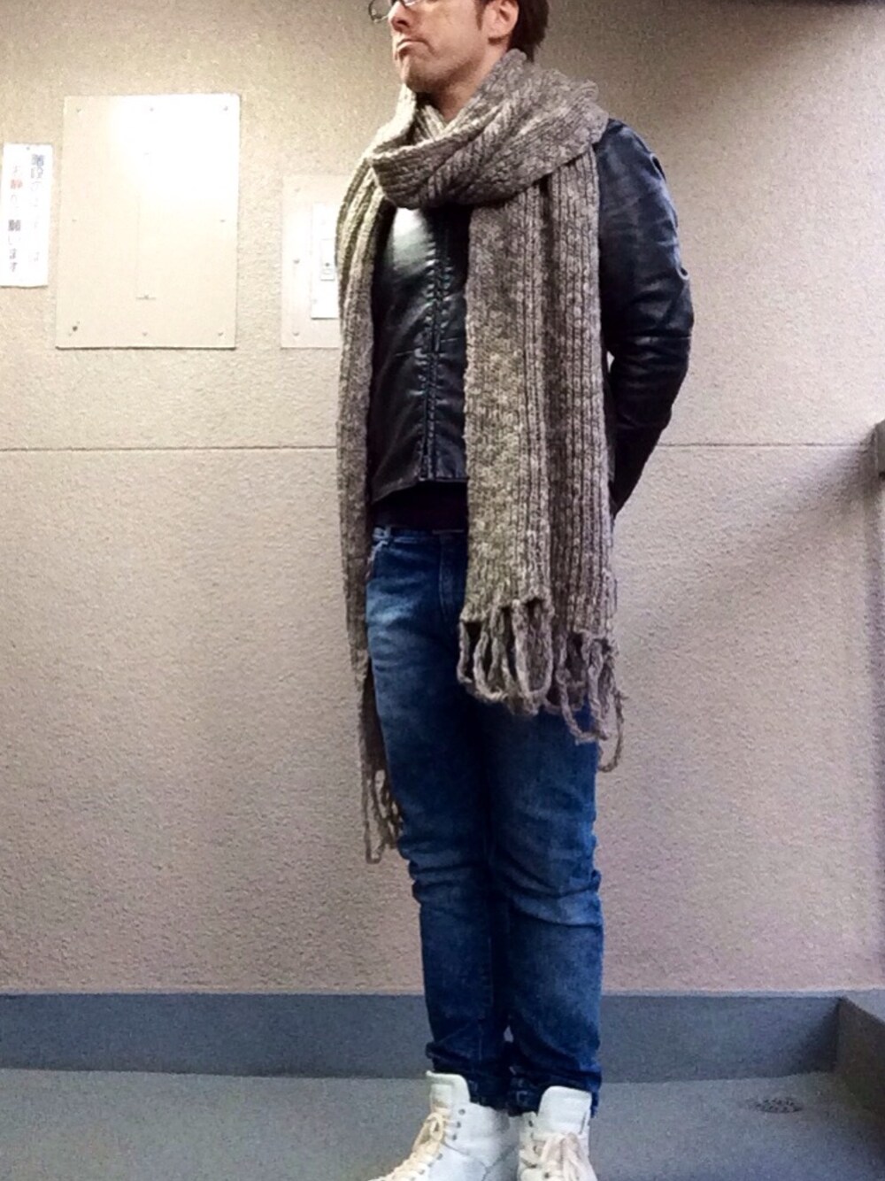 革ジャンっぽいの→UNIQLO ジーンズ→ZARA これにDiorのマフラーを巻いただけ。 オシャレにこだわらない人から 「ながっ!」と印象はつくみたい。 長くて重いから肩こります。