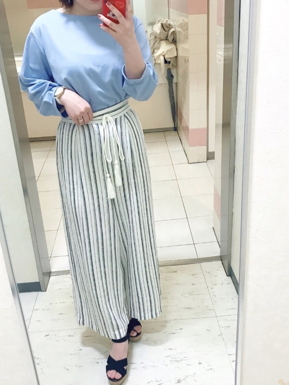 雨コーデです。 8分丈のカットソーと 麻のガウチョパンツです