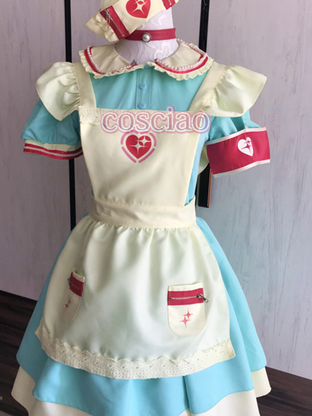 参考サイト:https://cosciao.com/goods-imas-cinderella-riamu.html 『アイドルマスターシンデレラガールズ』に登場する夢見りあむ初期カード特訓後姿のコスプレ衣装です、かわいいナース風エプロンドレスです。