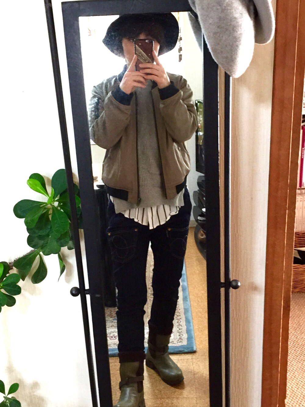 前々回のコーデのMA-1のリバーシブルです😄 黒とカーキが欲しかったので、これを見つけた時は即買いしちゃいました😆🎵 暖かくなってきたので、これから頻繁に出てきそうです😃✨