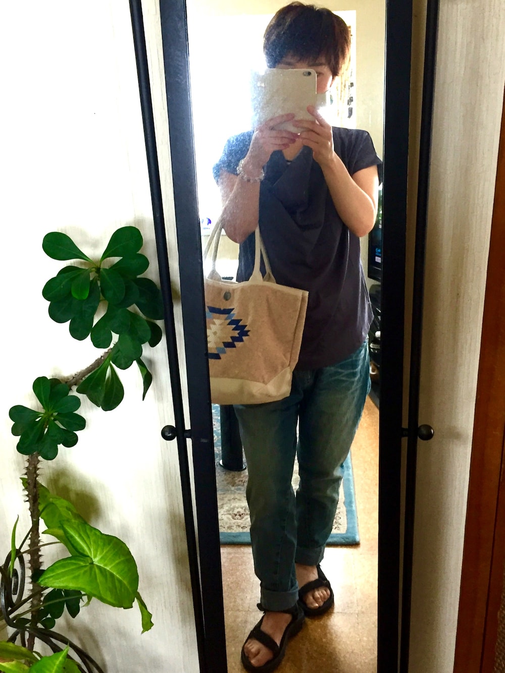 ひまわり🌻のトートバッグ「BAYFLOW/PILE NATIVE TOTE BAG パイルネイティブトートバッグ」を使ったコーディネート
