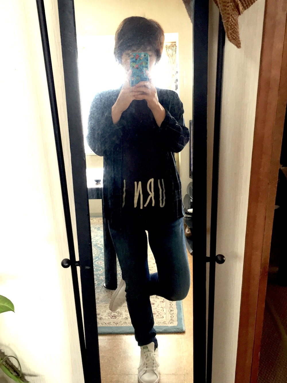 台風🌀来なくて良かった😁 涼しいので、お気に入りのジーナシスのシャツ💕コーエンのデニム、ストレッチが効いてて凄く履きやすくてオススメです🎵
