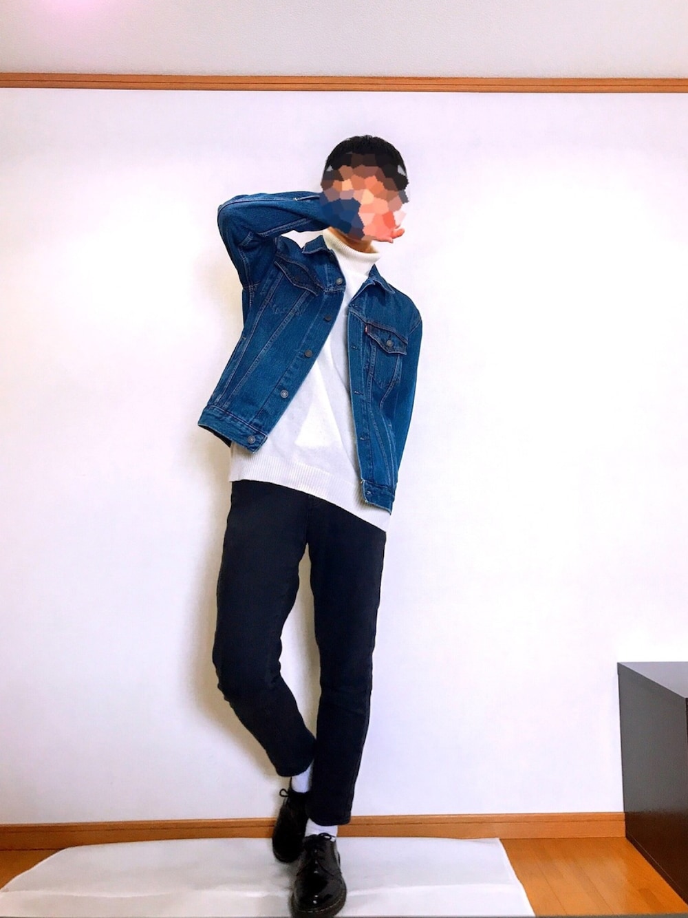 こんにちわ! こた。です。 今回も王道デニムジャケットを使った コーデとなります。 シンプルすぎて真似し放題です。 春秋はこれに靴下やスニーカーで 個性を出しましょう。 このデニムジャケット、新品なのに何故か 半額で売られていました。 店員さん曰く 「なんでこんなに安いのかわからないです(失笑)」 だそうです。 その日はニヤニヤしながら帰路に着いたので 隣のおじさんに変な目で見られたのを覚えています。 冬はこの上からコートを羽織っても◎ outer Levi's(XL) knit UNIQLO(XL) pants UNIQLO(XL) socs 靴下屋 shoes Dr.martens p.s. YouTubeでラジオをやります! それに伴ってお便りを随時募集中です。 宛先はこちら www.chilloutradio@gmail.com またWEAR内でのコメント欄や InstagramのDMでも受け付けています。 ぜひ^ ^