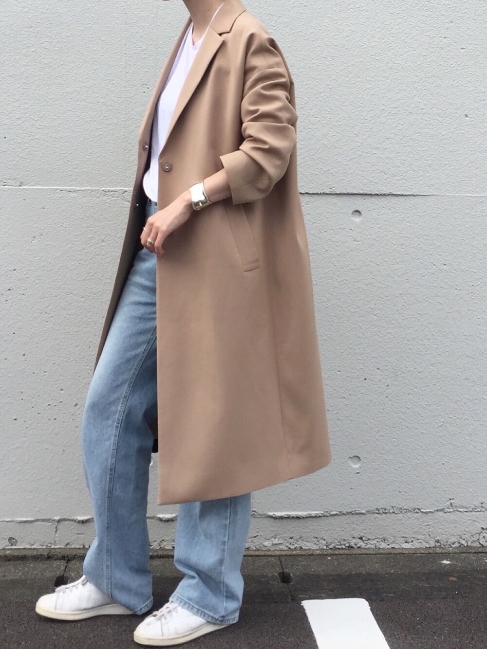 cota_raのチェスターコート「マイクロダブルクロスチェスターコート」を使ったコーディネート