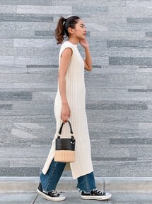 cota_raのTシャツ/カットソー「harmonie -OrganicCotton-(アルモニ オーガニックコットン) フライス5分丈袖無地タートルネック」を使ったコーディネート
