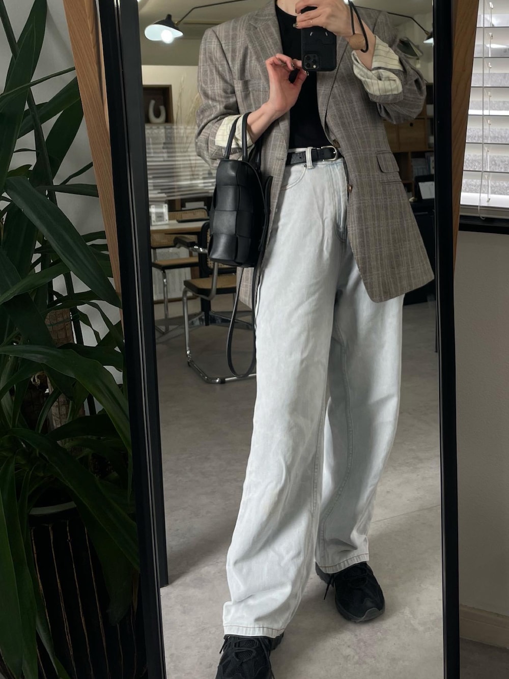 cota_raのデニムパンツ「SERGE de bleu/COCOON ICE PINK DENIM」を使ったコーディネート
