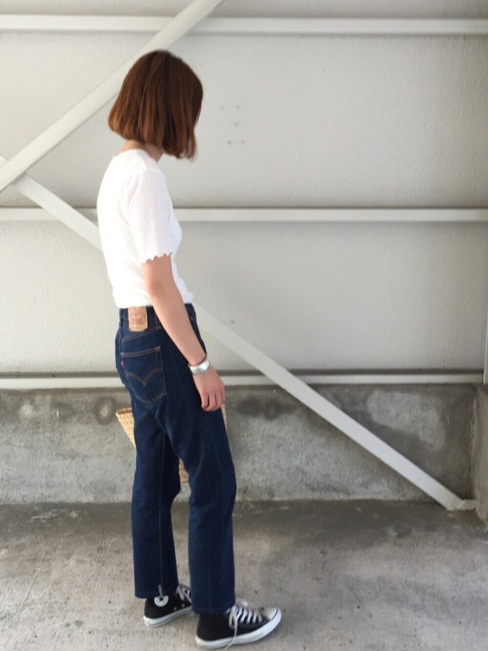 frillシースルーTシャツとLevisのvintageデニムは BONBELLESPOIRの新作です😁