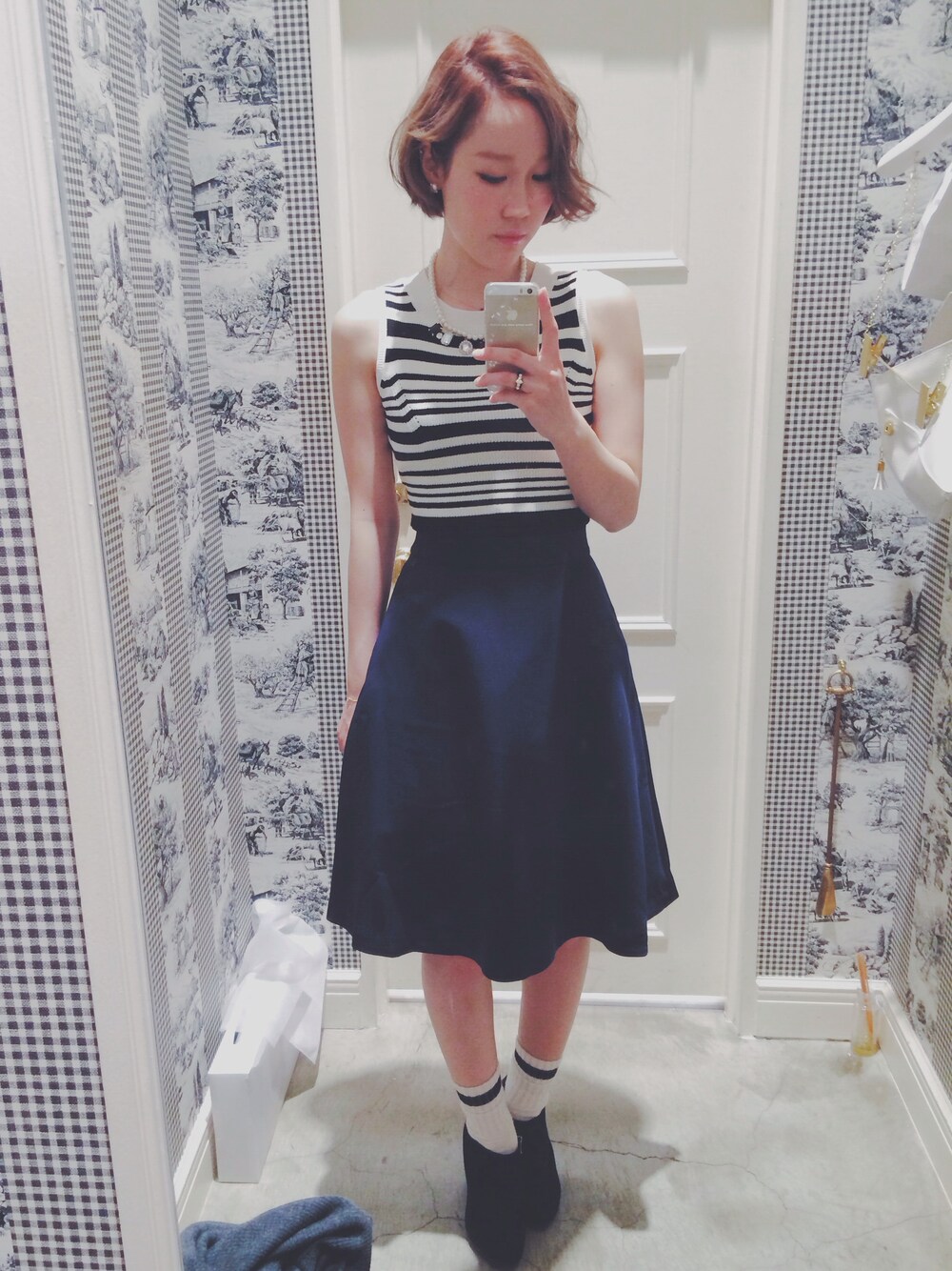 Top,skirt : snidel Socks : GU Booty : Korea