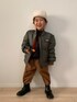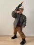 おはようございます☕️ 今日も見ていただき ありがとうございます⑅ᵗʱᵃᵑᵏઽ*♡ 🏷#ミリタリー 西松屋🐰の MA-1中綿ジャケット💚 裏🍊のMA-1探してて、 バクプリもあって裏🍊でデザイン凝ってるのに 西松屋価格で即決でした🙊1599円とかだったかな? 2サイズupで130着てるので 肩パッド入ってるように見えますが😂 この位オーバーサイズで着たかったから👌🏻💓 銃持たせたらまぁノリノリです🔫😎🪖