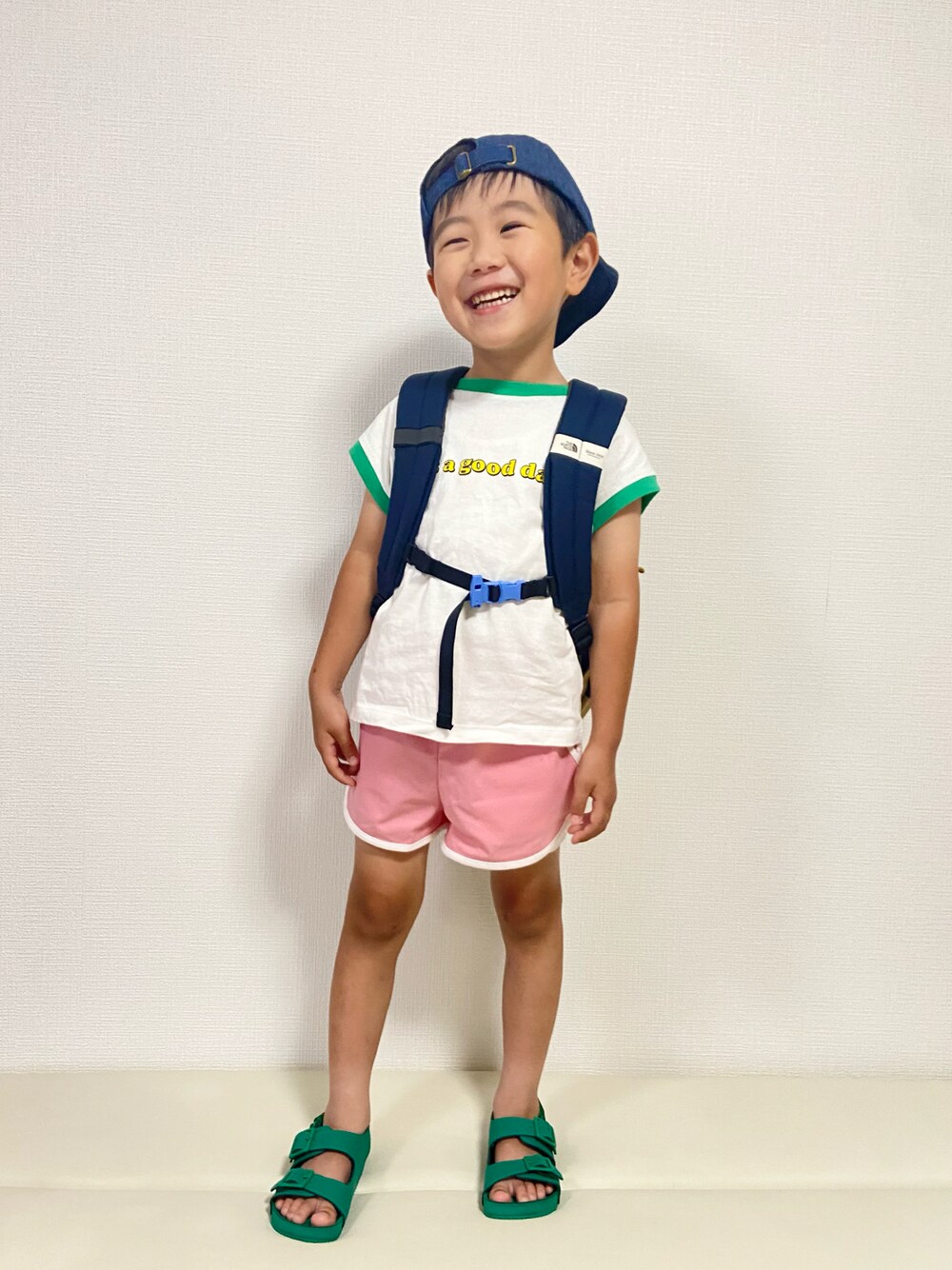おはようございます☀︎◡̈ 今日も見ていただき ありがとうございます♡! #キャップ ピンクとグリーンの組み合わせやりがち🌷 去年の服達🫶🏻 最近ピンク嫌がらず文句言わなくなった😳💞 無頓着になっただけかもだけど嬉し🥹 ピンク履いたのでどこか男の子っぽくしたくて キャップを後ろ被りに🧢😎 帽子とバックパックに関しては 何年目でしょうかって程に長く愛用してます🤭