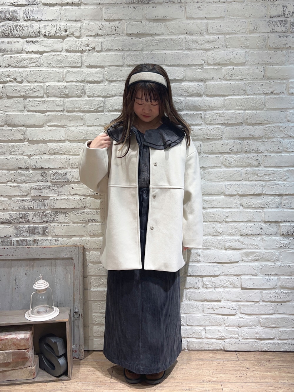 ご覧いただきありがとうございます🐥 モノトーンコーデ♩ フリルの襟をシンプルなコートに合わせることで甘さを足しました𓍯 コートはこれからの冬に大活躍する使い回し抜群アイテムです◎
