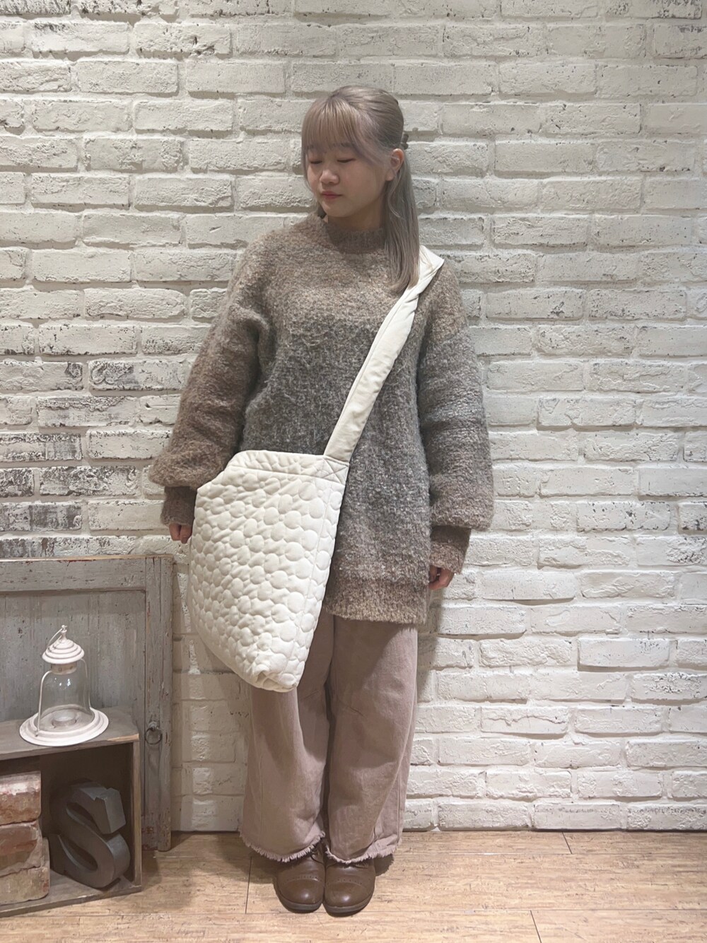ご覧いただきありがとうございます🐥 淡色コーデ♩ ベージュで統一した色味に白の小物を合わせることで地味すぎない印象に𓈒𓏸𓐍