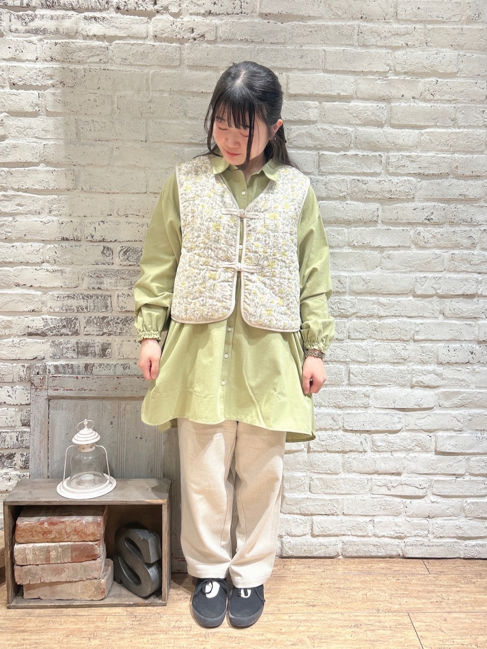 ことり🐥のベスト「中綿キルトチャイナボタンベスト」を使ったコーディネート