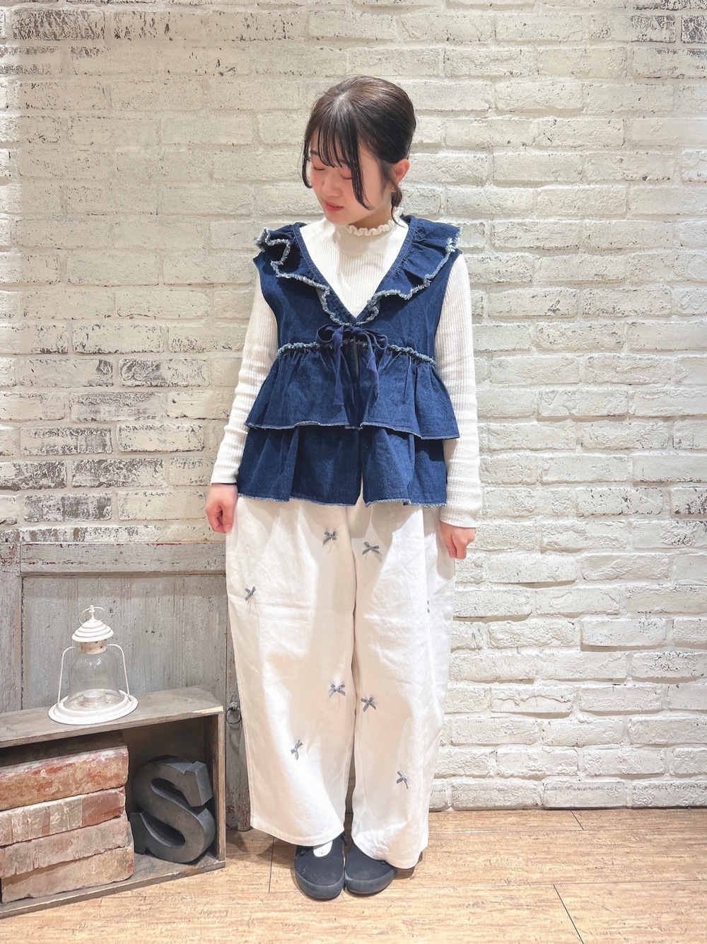 ホワイト×デニムで春らしい雰囲気にしました♪ パンツは2回折って履いてます◎