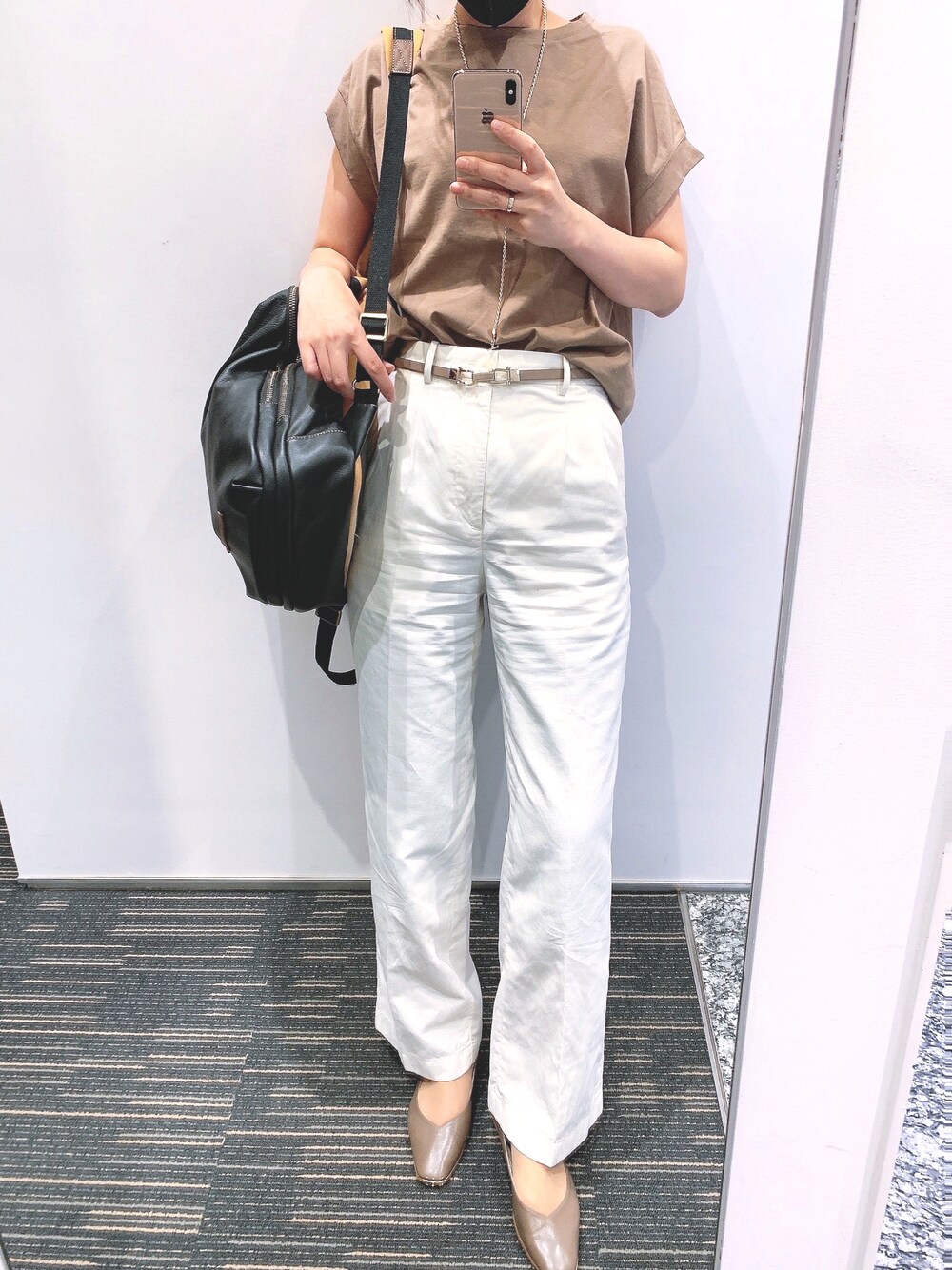 最高気温34度、最低気温25度、晴れ 真夏日に出社した時のものです。 去年購入したお気に入りのブラウンの綺麗めなワイドTシャツは、ガチガチのドレスコードの会社でなければ着ていけるので大助かりです。 最近GU小物の使い回しが多いのですが、格安なので大変有難いです(。-人-。)