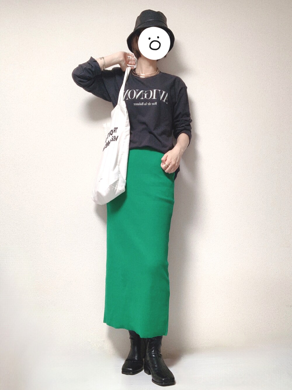 coukoのスカート「【15色展開】セルフカットリブロングタイトスカート」を使ったコーディネート