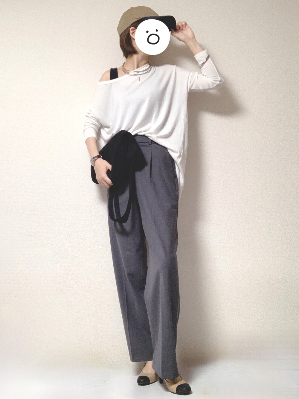 最高気温30度、最低気温23度、曇り 昨日の外出時のコーデです。 (※日中は在宅勤務&湿度高過ぎで暑かったのでタンクトップでしたが、これでも夕方暑かった…) 今回はユニクロのお馴染みタックワイドパンツを穿きましたが、履き心地の良さに気づけば3色も買ってしまい、断捨離がいっこうに進みません…。(昨日2袋分も断捨離したのに…)