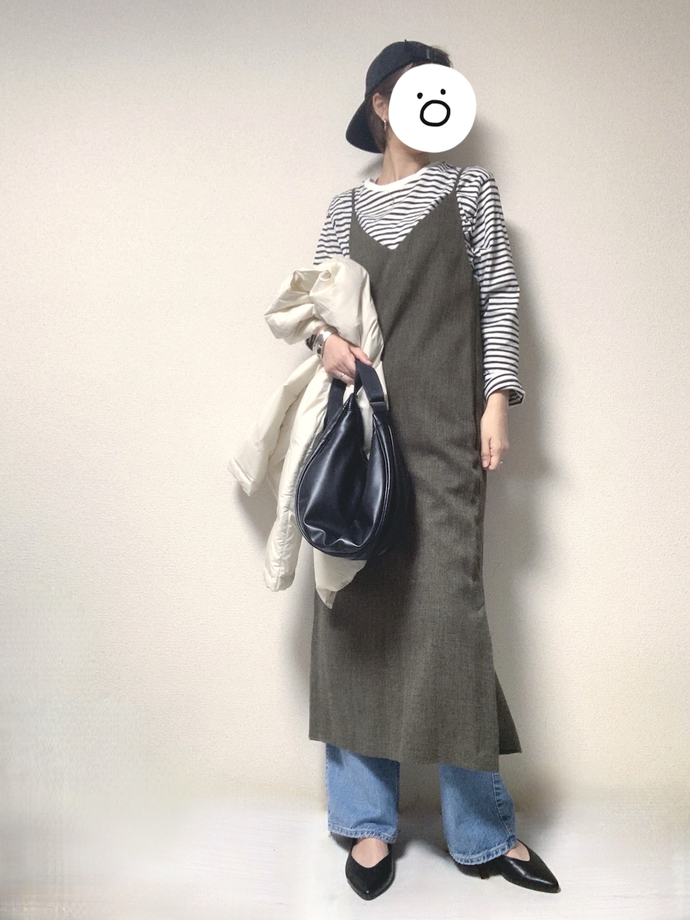 最高気温18度、最低気温7度、曇り これを残すか迷いましたが…昨日の在宅コーデです。 Tシャツにデニム、申し訳程度のキャミワンピを着用し、ご近所のスーパーには薄手のダウンジャケットを羽織っておりました。が… キャップかぶると商店街の八百屋に居そうな人にしか見えませんね…。