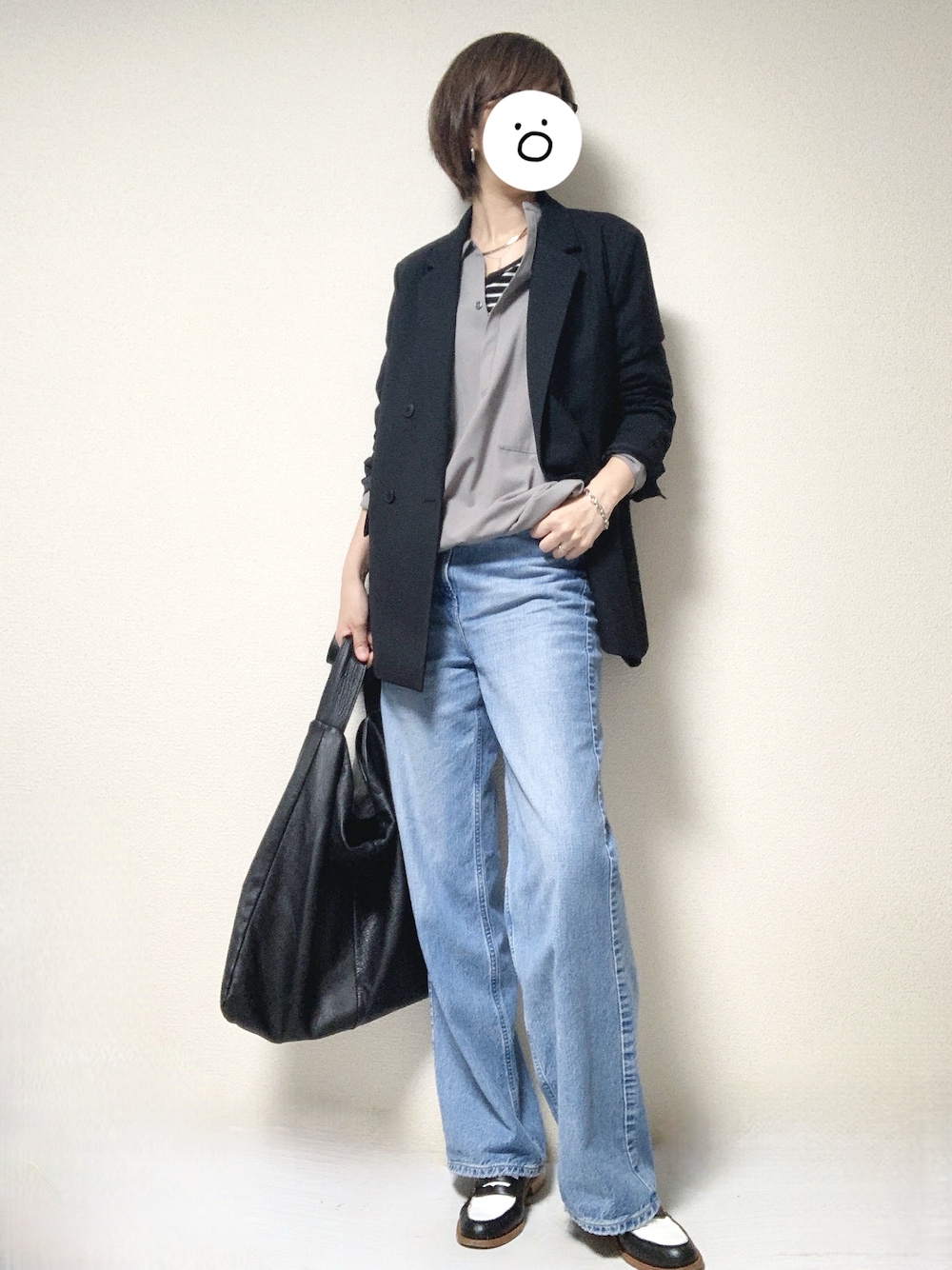最高気温16度、最低気温12度、曇りのち雨 先日の通勤コーデです。 久々にジャケット&デニムの、メンズライクな感じで出社しました。 あらためてここ最近のコーデ記録を見ていると、春は自然とデニムが多くなってくるなぁと感じます。