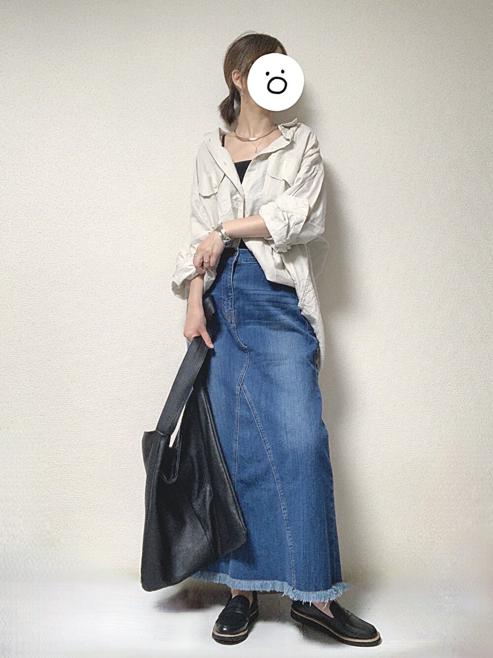 最高気温32度、最低気温25度、晴れ時々雨 週明けの通勤コーデです。 朝は晴れていたのですが、夕方に激しい雨が降ったり止んだり…という事で、足元をレインシューズにし、ボトムは濡れたり汚れたりしてもジャブジャブ洗えるデニムのスカートにしました。 梅雨時期の通勤は足元が濡れるのが嫌でいつも困っておりますが、結局はほぼこのレインシューズばかり履いております。