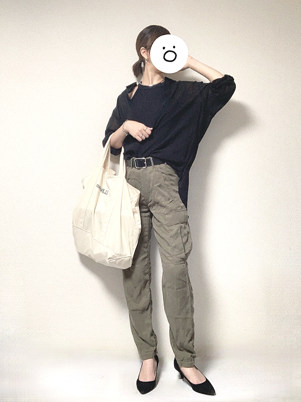 最高気温34度、最低気温24度、曇り 昨日の通勤コーデです。 昨年購入した「UNIQLO×イネス」コラボのシアーシャツの中に、同じくUNIQLOのホルターネックタンク、そして今年3年目となる愛用中のカーゴジョガーパンツを合わせて出社しました。 イネスとのコラボシアーシャツ、ほんと黒は使いやすくて、色違いで購入した青よりも沢山使っている気がします。