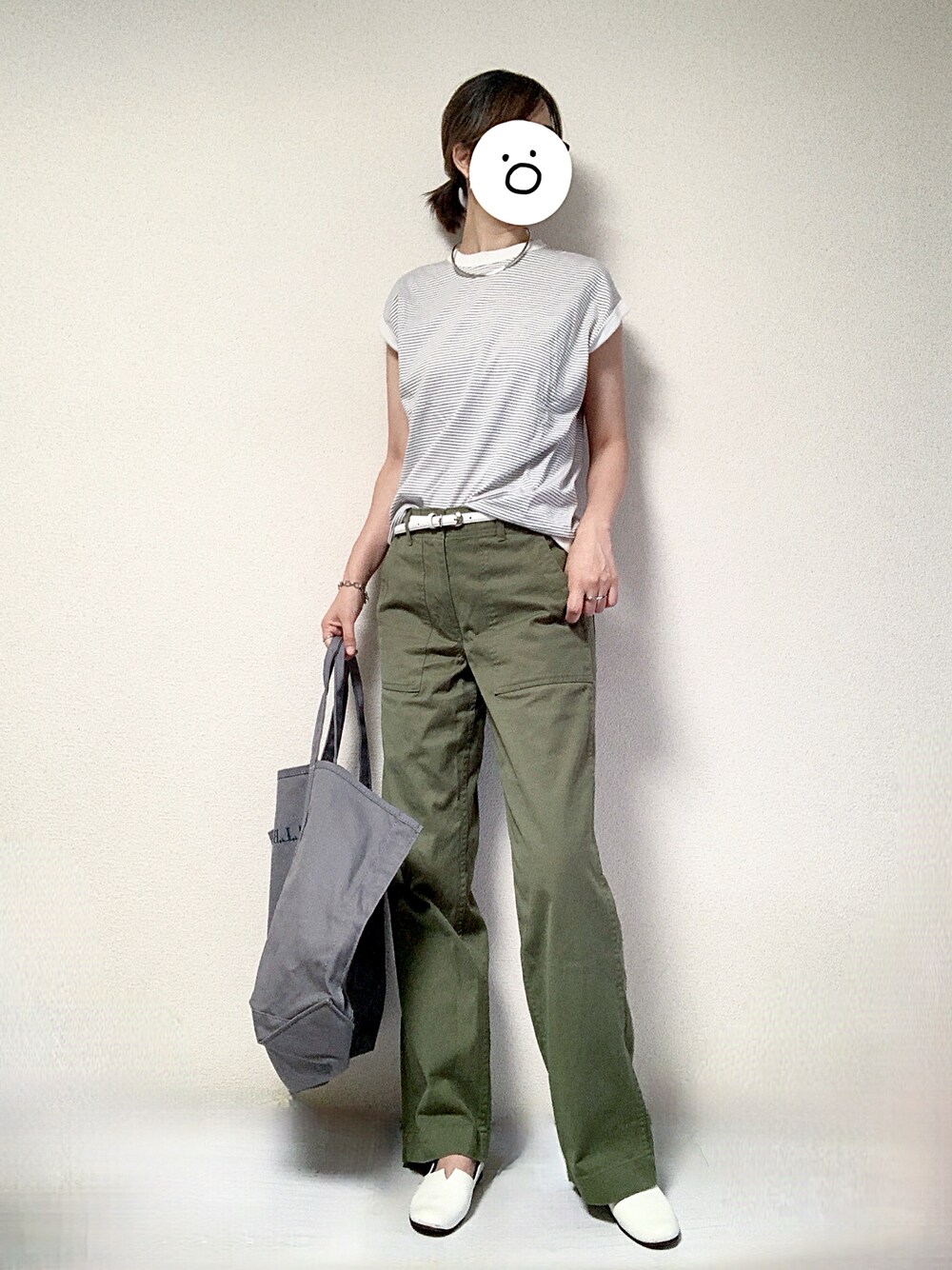 最高気温37度、最低気温27度、晴れ 昨日の出勤コーデです。 暑すぎてこれ以上布を重ねると耐えられない…と思い、Tシャツ&パンツの超絶ラフなコーデで出社しました。 本当は重ね着をした方がお洒落に見えやすいのでしょうが、身体に優しい格好をしないと体力が持たないので、最近はTシャツ&何かだけのシンプルなものが多いです。