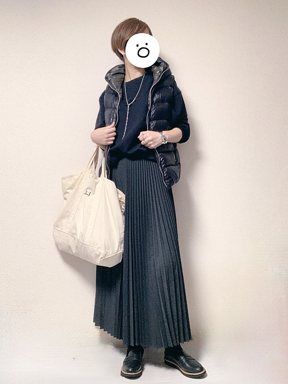 最高気温18度、最低気温13度、曇りのち雨 昨日の通勤コーデです。 雨が降って冷え込む…ということで、スウェットの上にダウンベストを着用しました。 このダウンベスト、多分10年物で、なんだかんだでベーシックな色と普通の形状のダウンなので、今でも重宝しております! そして下半身は先日の「UNIQLOC」で購入したプリーツスカート!このスカート、丈も長くも短くもなく、昨日のような雨の日にお役立ち