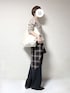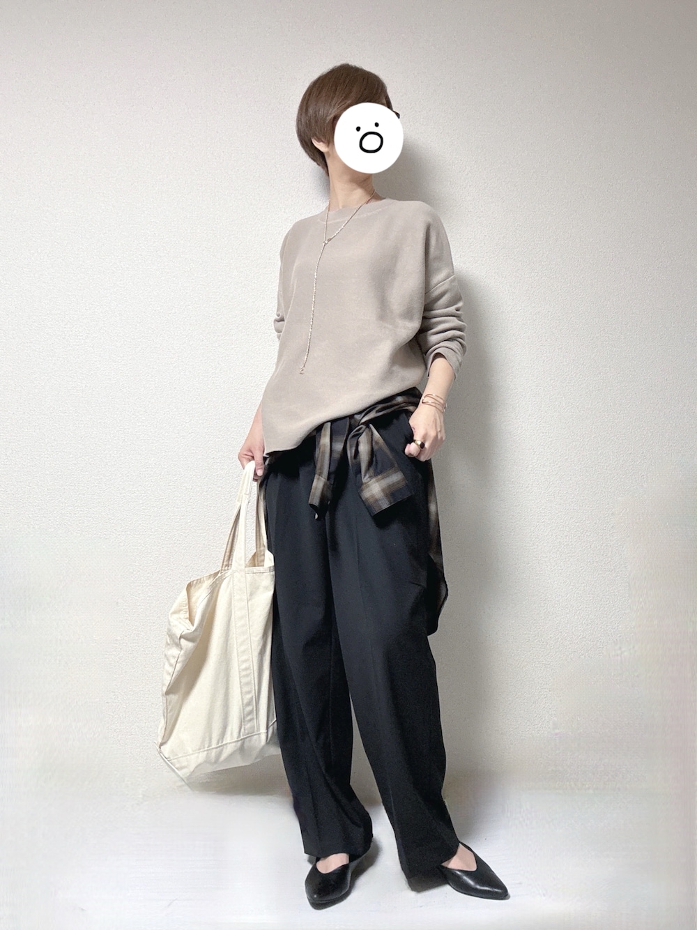 最高気温気温21度、最低気温15度、曇り 昨日の通勤コーデです。 月末の仕事で疲れ過ぎてニット&ワイドパンツのリラックススタイルでした。 寒い時に羽織れるように、昨年スピック&スパンで購入したチェック柄のお気に入りのシャツを腰に巻いてました。