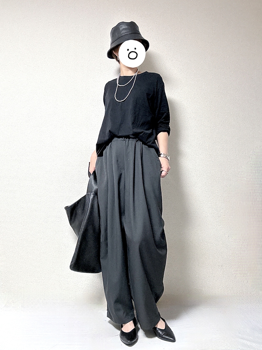 最高気温23度、最低気温12度、晴れ 昨日の外出コーデです。 日中外に出ていたのですが、中にヒートテックを着ていたものの、ちょっとこの格好では肌寒かったです…。 私にしては珍しく、ちょっとモード寄りなゆるっとモノトーンカジュアルでした。 気付けば最近「ミズイロインド」のスーツ地のワイドパンツがお気に入りで、軽いしはきやすいしコレはいい買い物をしたなーと思える1品でした。