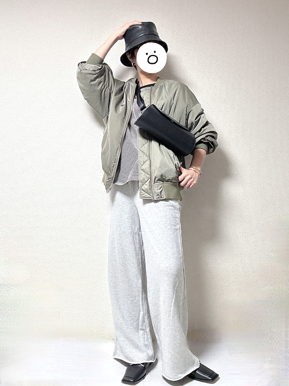 最高気温17度、最低気温8度、晴れのち曇り 昨日の休日コーデです。 基本的に終日家&買い出しは買い出しだけだったのでこんな感じのワンマイルコーデでした。 今年購入した細ボーダーのトップスにワイドスウェットパンツを合わせ、ガッツリリラックスカジュアルにしました。 着替えるのが面倒で、MA-1に小物だけ申し訳程度に革の綺麗めのものを身につけました。