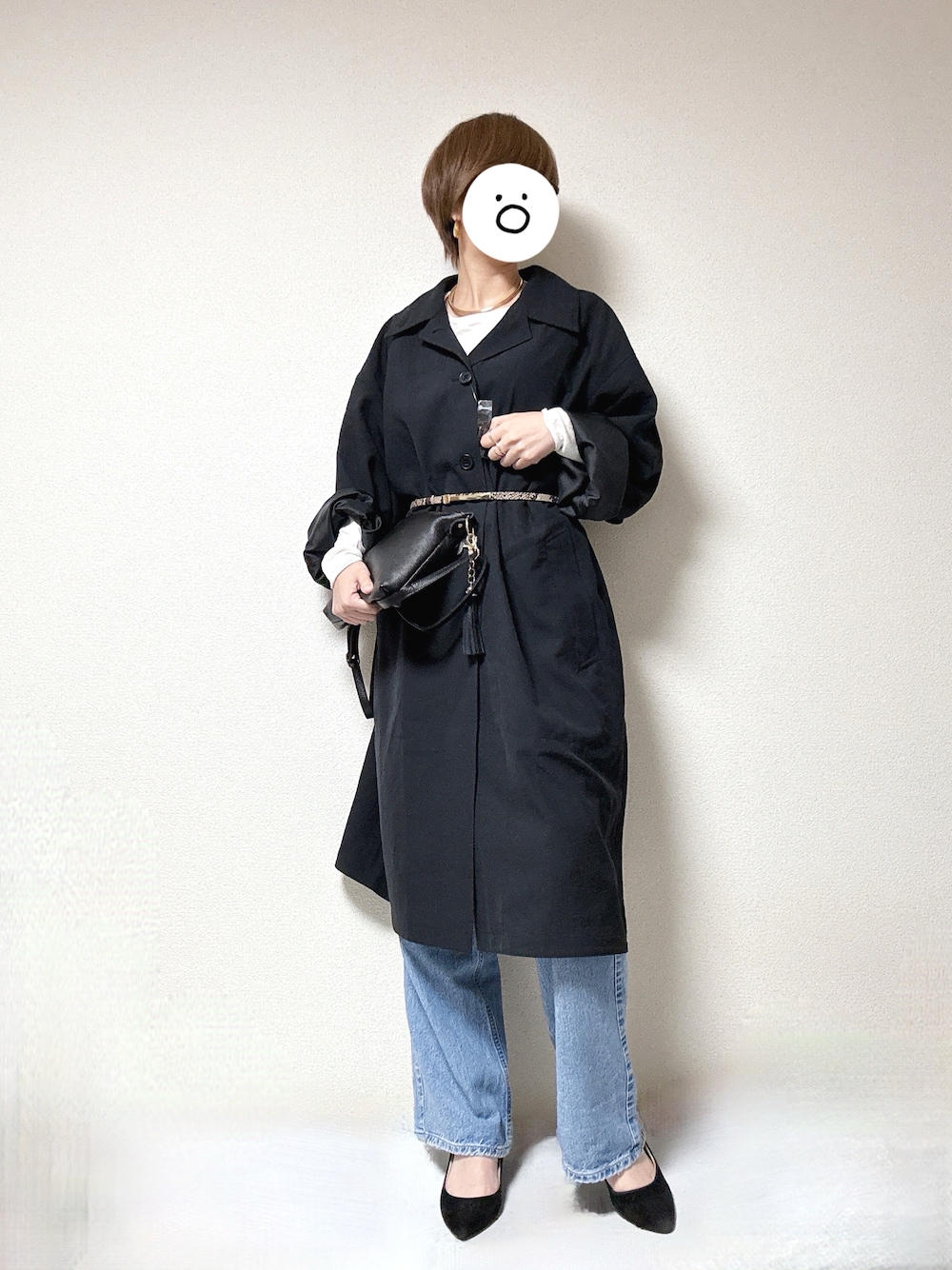 coukoのステンカラーコート「オーバーサイズステンカラーコート」を使ったコーディネート