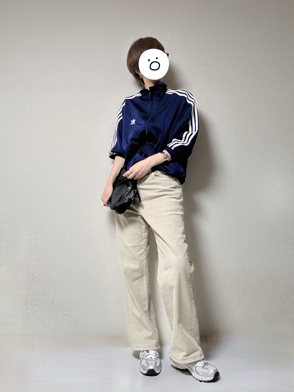 最高気温23度、最低気温15度、曇りのち雨 昨日の休日の格好です。 前日から急に気温がぐっと下がり、家の中でも本格的に長袖を着用しておりました。 こちらはひと月前にadidasのアウトレットで30%OFFで購入したジャージですか、青々とした色に一目惚れしてしまい…。 先日もベロアのジャージを購入してしまい、私の中で数年遅れのジャージブームが来ております。