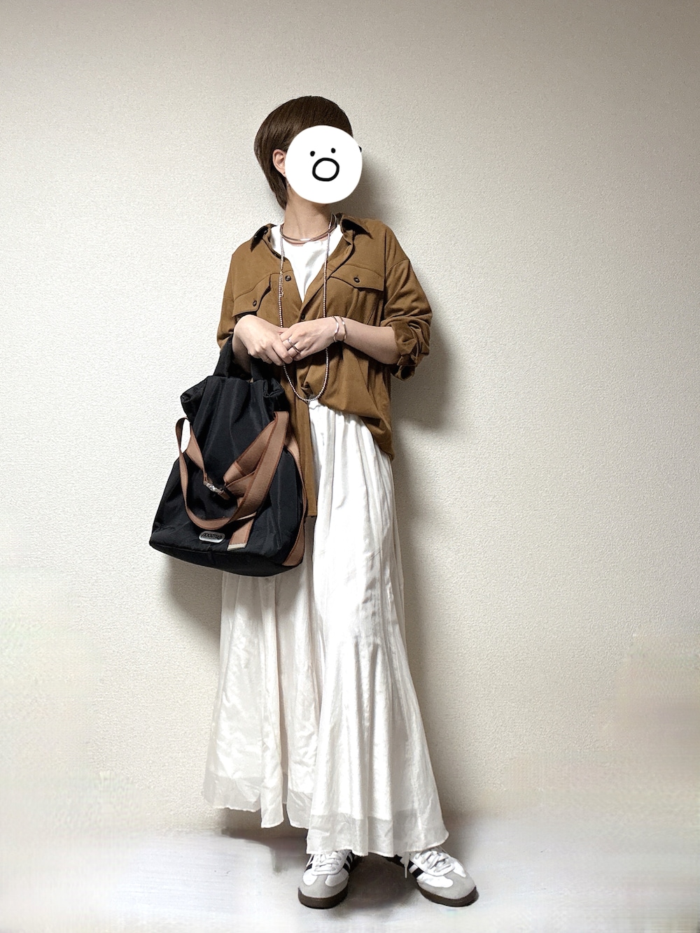 昨日昼間の外出時のコーデです。 久々に白のフレアロングスカートを取り出し、若干春っぽいコーデで出掛けました。 シャツは初春に買っていたフェイクスエードのシャツですが、冬だけでなく三寒四温なこの時期もだいぶ重宝しております。