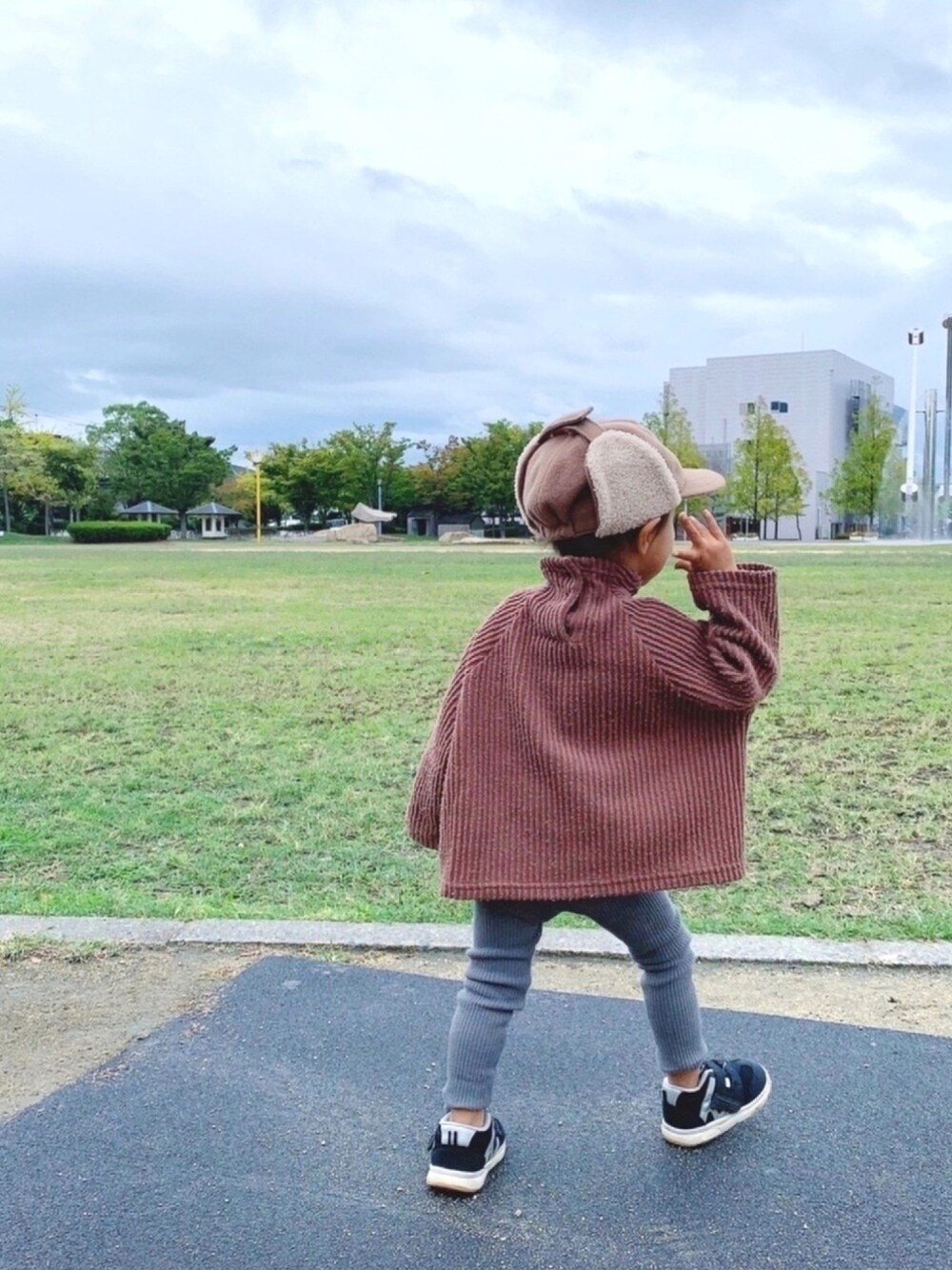 おはようございます☺︎ 肌寒かったので、早いかなあ?と思いながらも 去年から愛用してるハイネックのモコモコを♡ 裏起毛とかじゃなくて見た目より通気性も良いから全然大丈夫だった𓍯♡ 皆が持ってるフライトキャップ格好良いからマネして唯一持ってるバースデーのを被らせたけど、、雰囲気全然違うやないかい𓀃 上マジックテープだよ?←(笑) 🏷#くすみカラー のレギンス合わせで♡ 見て頂きありがとうございます♡ いいね𓏚フォルダin 𓏚フォロー とっても嬉しいです♡ igもよろしくお願いします♡